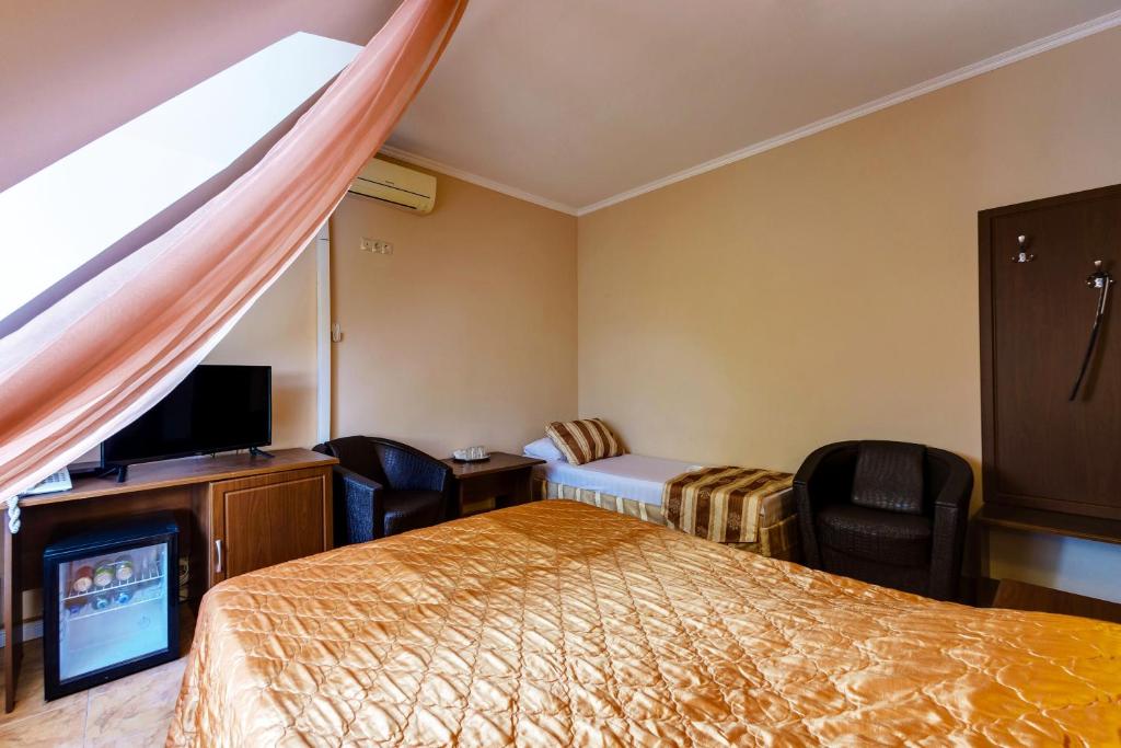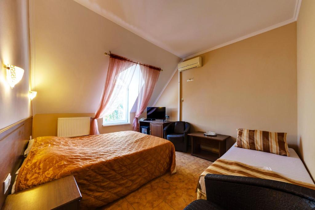 «Улучшенный двухместный номер с 1 кроватью» 20 кв.м. В номере 1 двуспальная кровать. К услугам гостей полулюкса кондиционер и мини-бар.